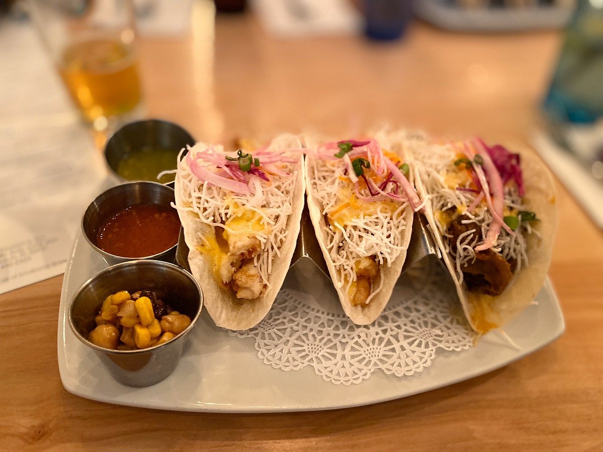 Casual setting - offers wings, sandwiches, tacos & vegetarian options. Extensive beer menu.